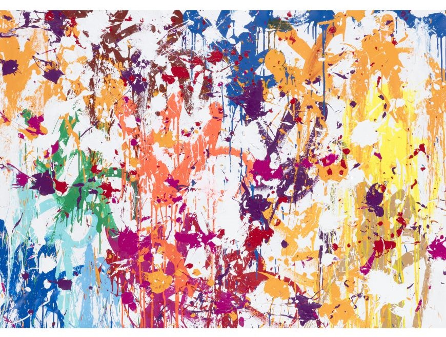 The result is a dynamic balance between chaos and order: dense brushstrokes, splashes, drips and layers merge in a complex composition. The colours – vivid, overlapping, in motion – seem to traverse the surface in a continuous flow, generating constant visual energy.