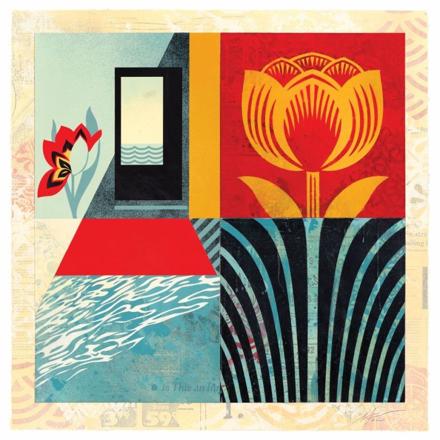 Shepard Fairey, one of the most influential street artists internationally, signs Modular Discourse 19, a work that combines stencil, screenprint and collage into a visually powerful and conceptually rich composition. Part of a series dedicated to global environmental and social challenges, this work reflects on a nature in decay and underlines the urgency of sustainable change.