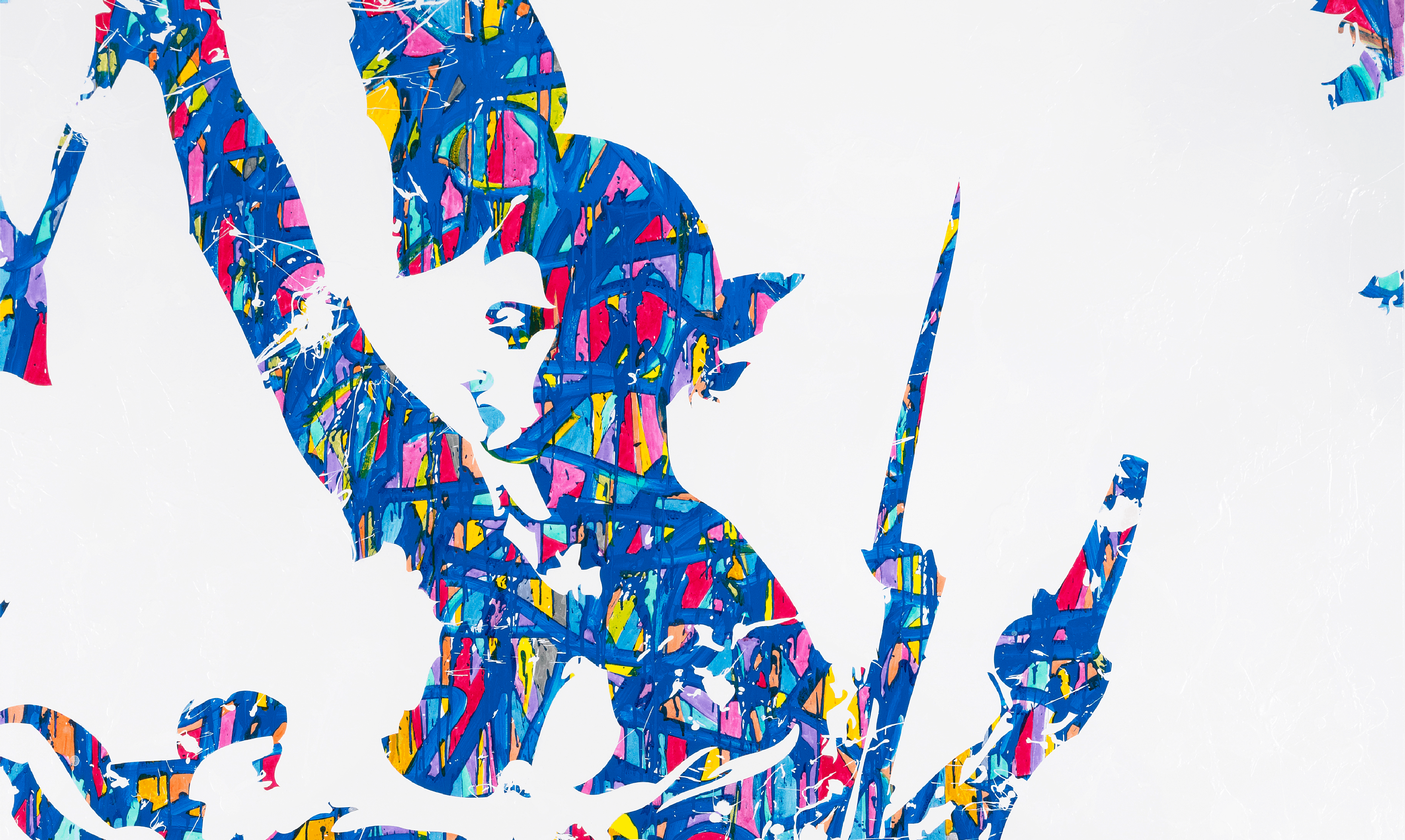 Un esempio emblematico di questa fusione stilistica è "Blank Stares" (2018), un dipinto in cui il dripping si unisce alla calligrafia urbana, creando un intreccio di forme, contrasti e simmetrie. Se per Pollock l'atto pittorico era un rituale, per JonOne è una danza del colore, un processo controllato che, pur apparendo caotico, cela un equilibrio matematico e una precisa intenzione artistica.